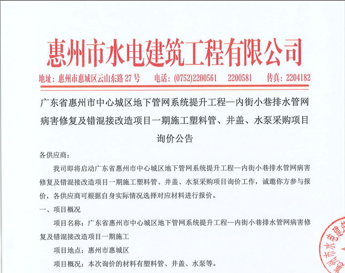 惠州市水電建筑工程有限公司成立于一九六四年四月,隸屬惠州市水務(wù)集團(tuán)有限公司,是一家國有綜合性施工企業(yè),主營水利水電工程、房屋建筑、市政工程等施工業(yè)務(wù)。公司擁有水利水電工程施工總承包一級、建筑工程施工總承包一級、市政公用工程施工總承包一級、公路工程施工總承包三級,公路路基、路面及建筑裝修裝飾專業(yè)承包二級,環(huán)保工程、機(jī)電安裝、河湖整治、輸變電工程專業(yè)承包三級等經(jīng)營資質(zhì)……
